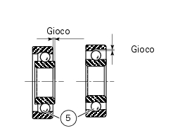 Prima di effettuare controlli dimensionali è necessario assicurarsi dello stato di usura dei cuscinetti del mozzo ruota; questa verifica deve essere fatta manualmente dopo aver pulito e sgrassato il cuscinetto nella relativa sede. Ruotare l'anello interno. Verificare l'entità del gioco radiale e assiale; un gioco eccessivo può essere causa di vibrazioni e instabilità del mezzo ed è necessario procedere alla sostituzione. Per la rimozione dei cuscinetti (5) dal mozzo ruota seguire quanto riportato di seguito.
