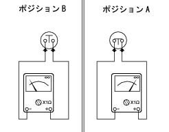 操作したとき、それぞれのスイッチの端子間に連続性があるか(ポジションA)を点検します(マルチメーターの機能については、セクション6-13、